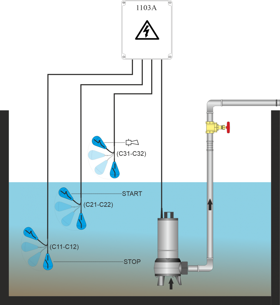 • Remote control connection for alarm (C31-C32) (pressure-switch, float-switch or other).