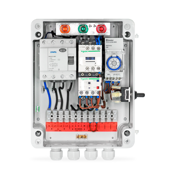 Swimming pool control box with time switch + differential switch + SAL/PH controller + command for transformer.